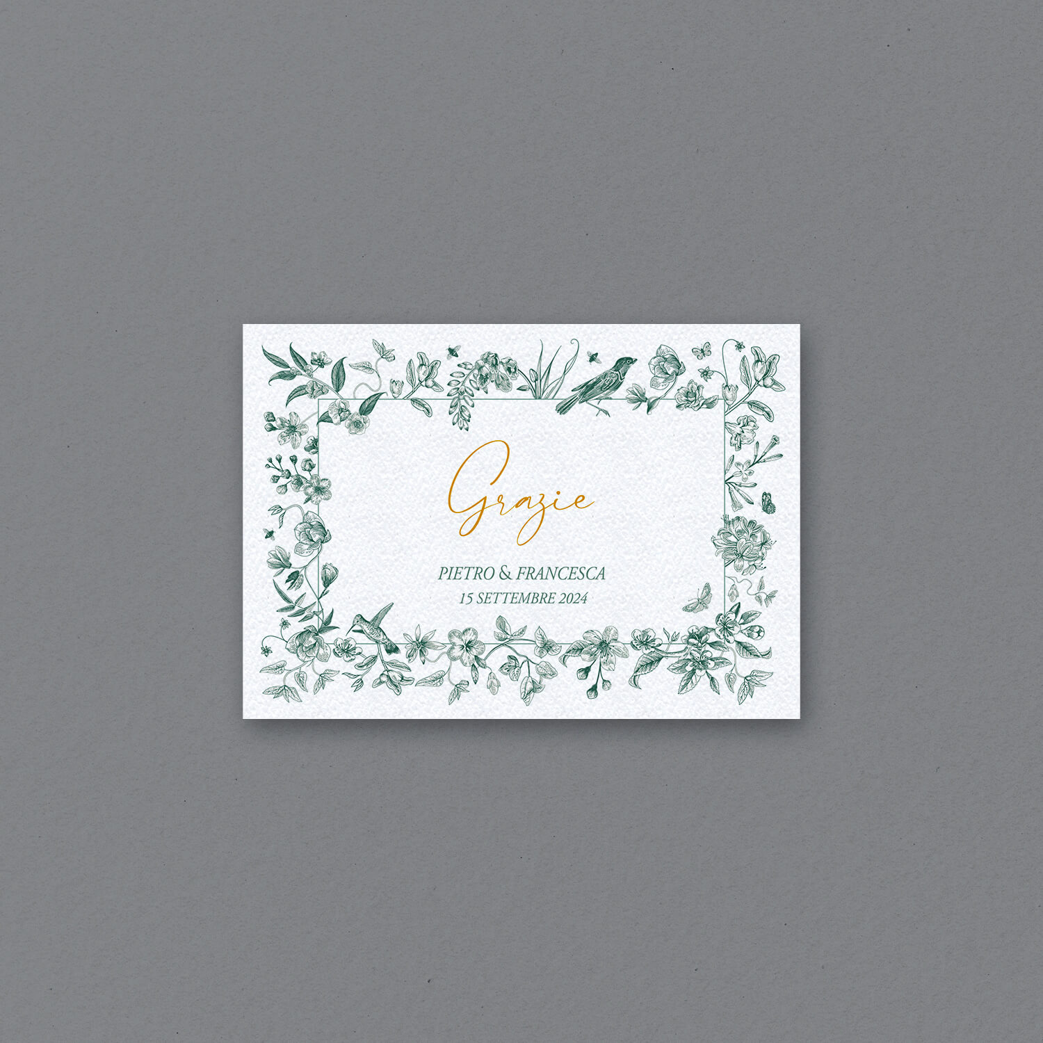 Uno stile botanico per questo coordinato, dove magnolie, camelie e buganvillee creano una cornice raffinata e bucolica. La tonalità di verde aggiunge un tocco elegante e senza tempo, perfetto per matrimoni, compleanni o eventi che celebrano la natura e l’armonia.