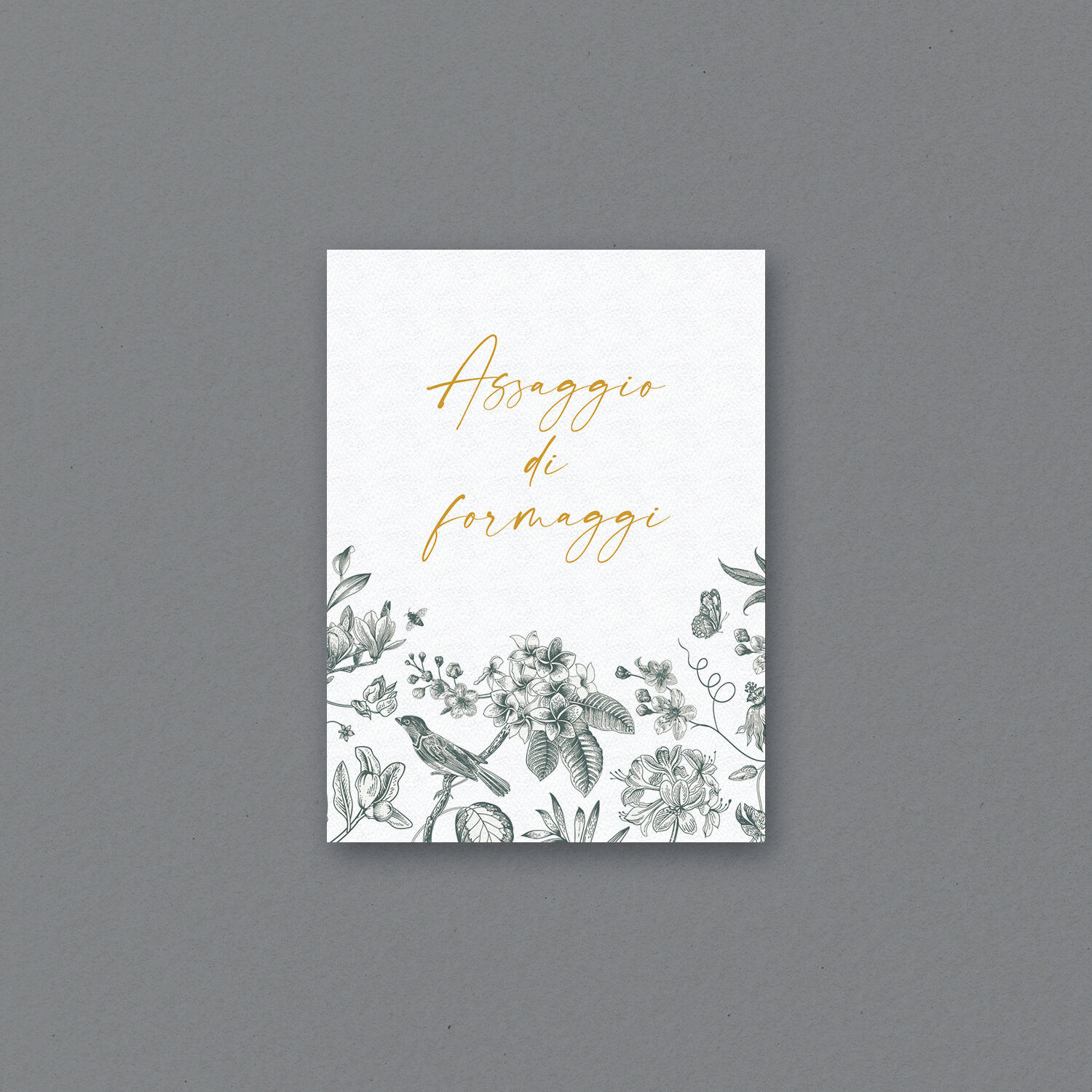 Il segnatavolo è stampato su cartoncino martellato di 250 g, con stampa digitale.