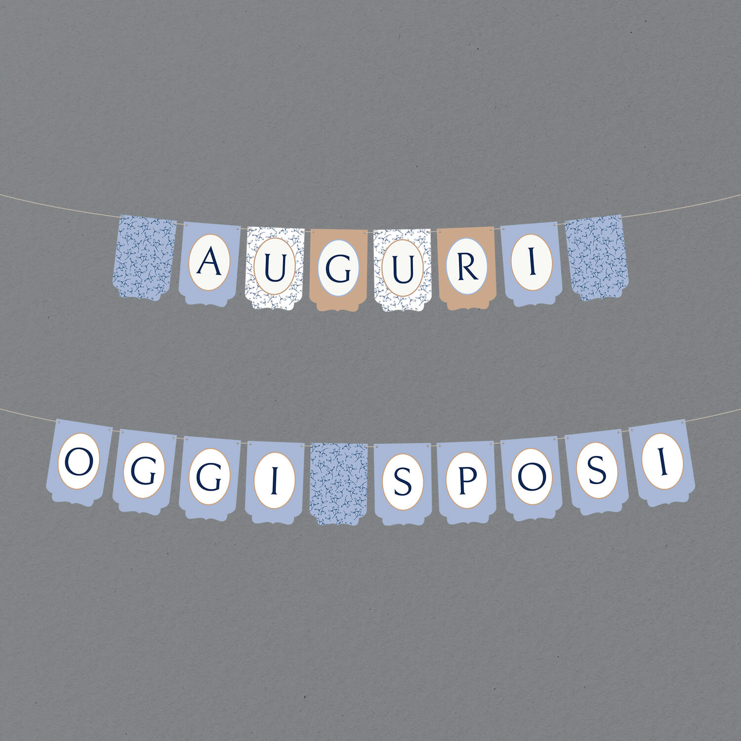 Le bandiere del festone sono stampate su cartoncino martellato di 250 g, con stampa digitale.