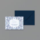 È possibile abbinarlo a una busta coordinata in formato 16,2 × 11,4 cm, colore blu marino.