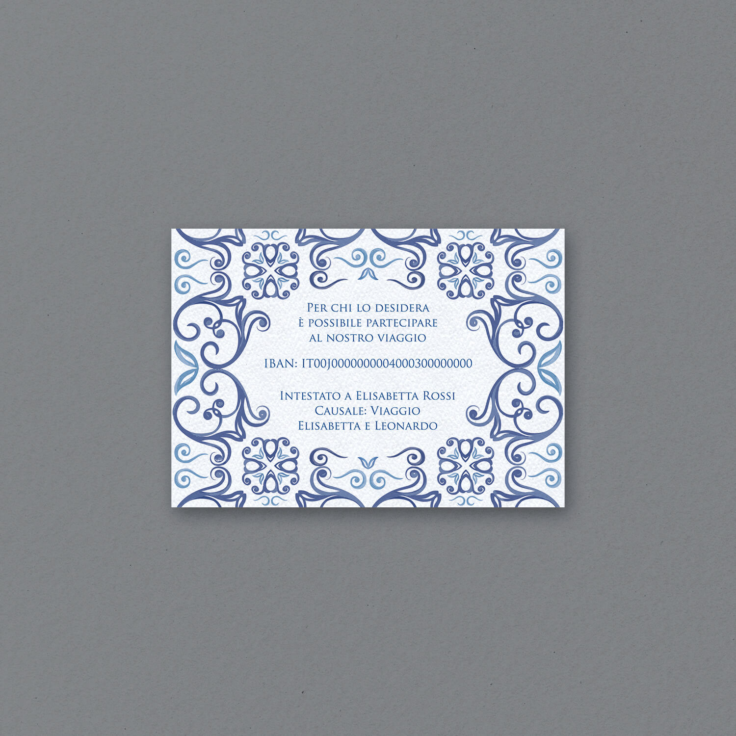 Il biglietto è stampato su cartoncino martellato di 250 g, con stampa digitale.