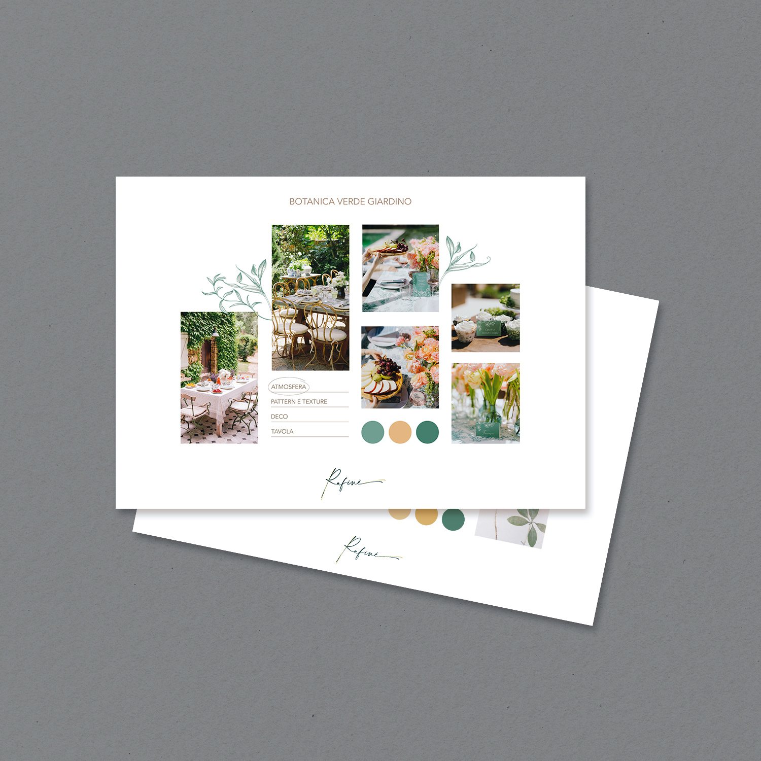 Una raccolta d’immagini, ma anche di oggetti, texture e colori che è fonte d’ispirazione e rappresenta le emozioni e sensazioni che si vogliono creare per un evento.