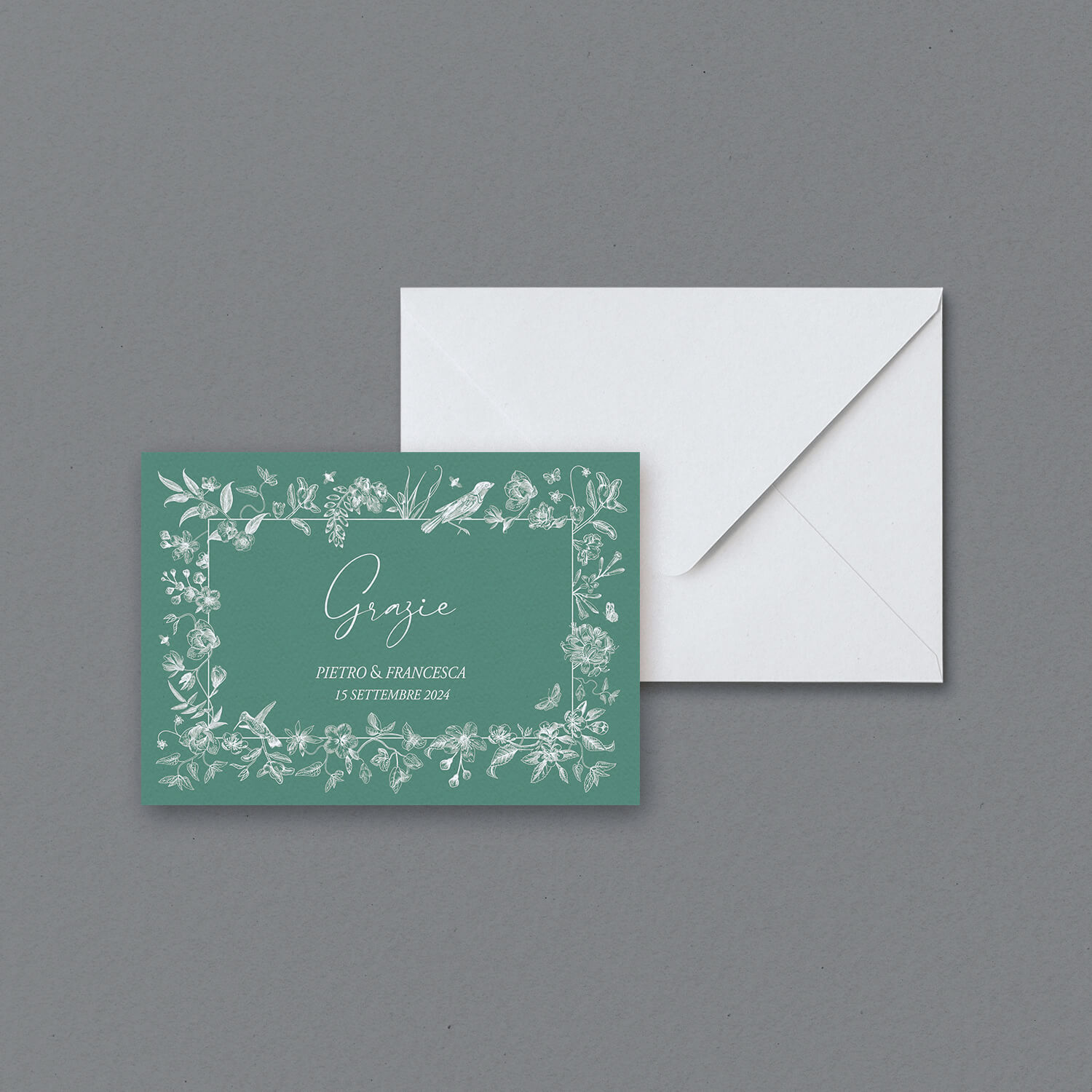 Nella sezione Kit Pronti, così come per Crea la tua Confezione, puoi scegliere il modello che meglio si adatta al tuo gusto o all’evento che stai pianificando. La grafica rimarrà la stessa, ma potrai personalizzare il testo in funzione delle tue esigenze e dell’occasione, come adattare le portate nel menu o inserire i nomi sui segnaposti. Puoi anche scegliere di utilizzare l’invito come biglietto di ringraziamento, se preferisci.