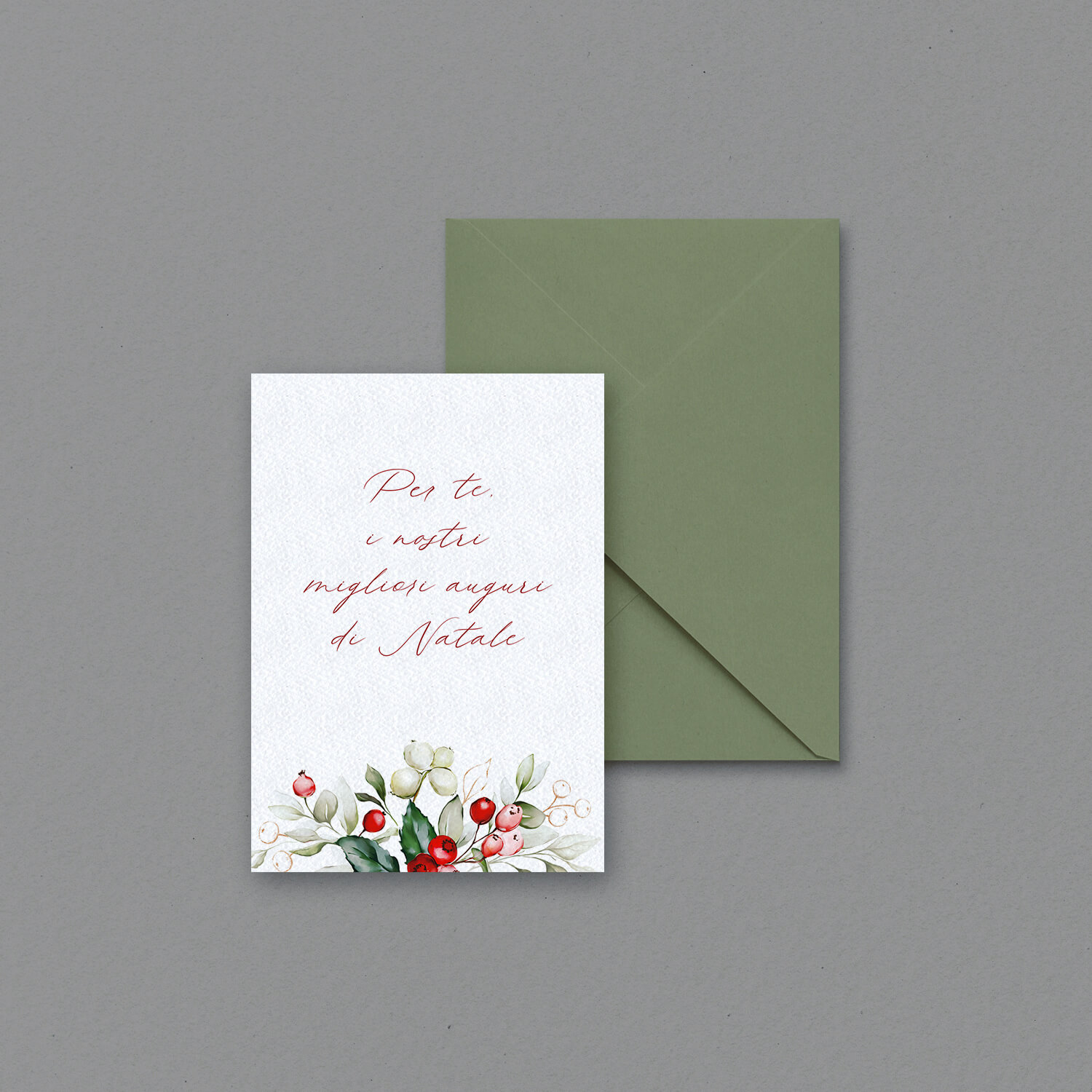 Il motivo e le tonalità di questo coordinato, composto di foglie e di bacche, evoca la tradizione natalizia.